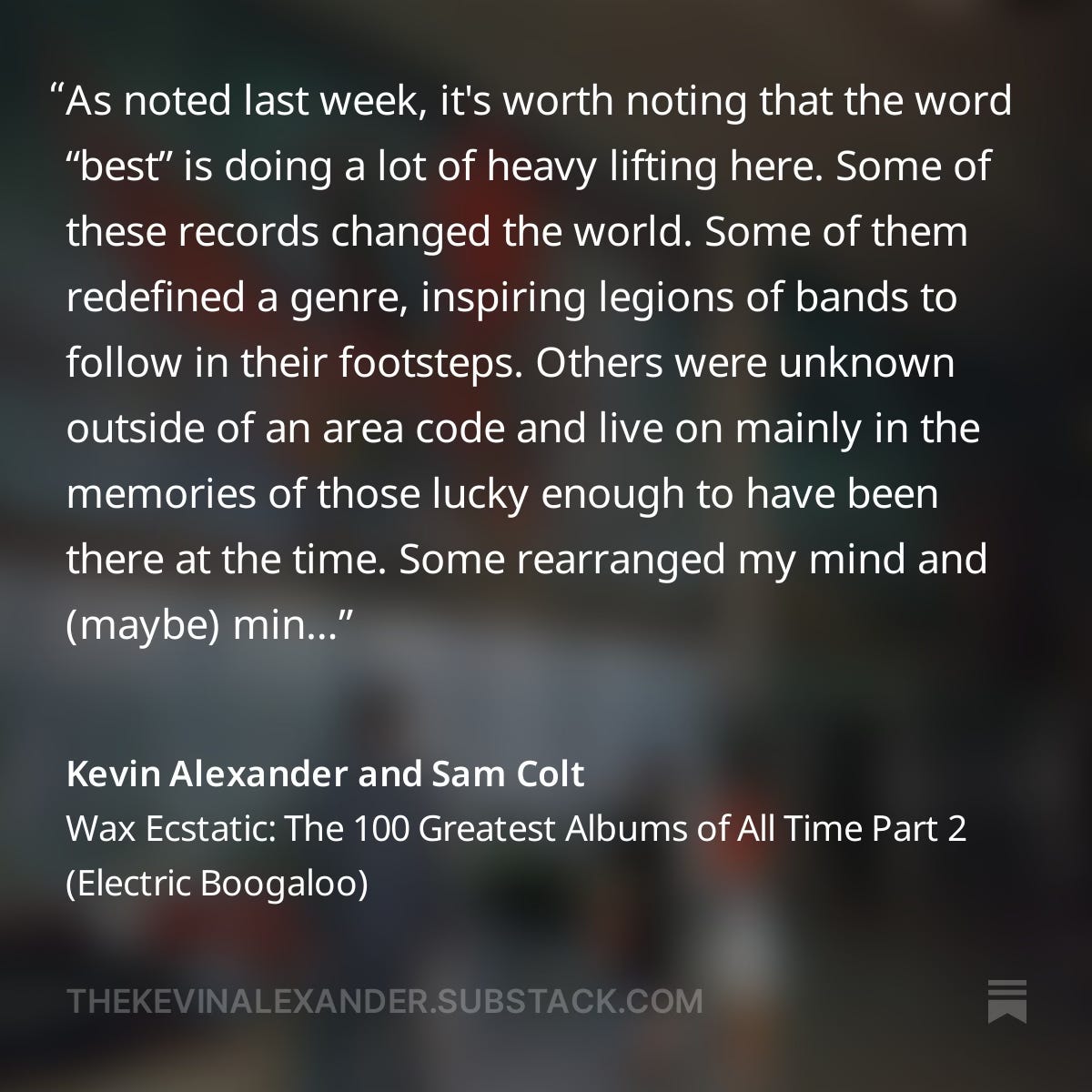 I had so much fun reading Kevin Alexander and Sam Colt’s “Wax Ecstatic: The Hundred Greatest Albums of All Times” posts that I could not stop trying to have a go myself, it’s a slow summer and who doesn’t like listicle. I enjoy writing the “Gones for good” weekly about life in Lyon, but in the summer we get the hell out of the heat, as do most of the other Gones*, and so for a change I thought I would do some album musings. After all, I am one who delights in all manifestations of the Terpsichorean muse. The clever conceit in their approach was to make it personal for each of them without trying to tick boxes.